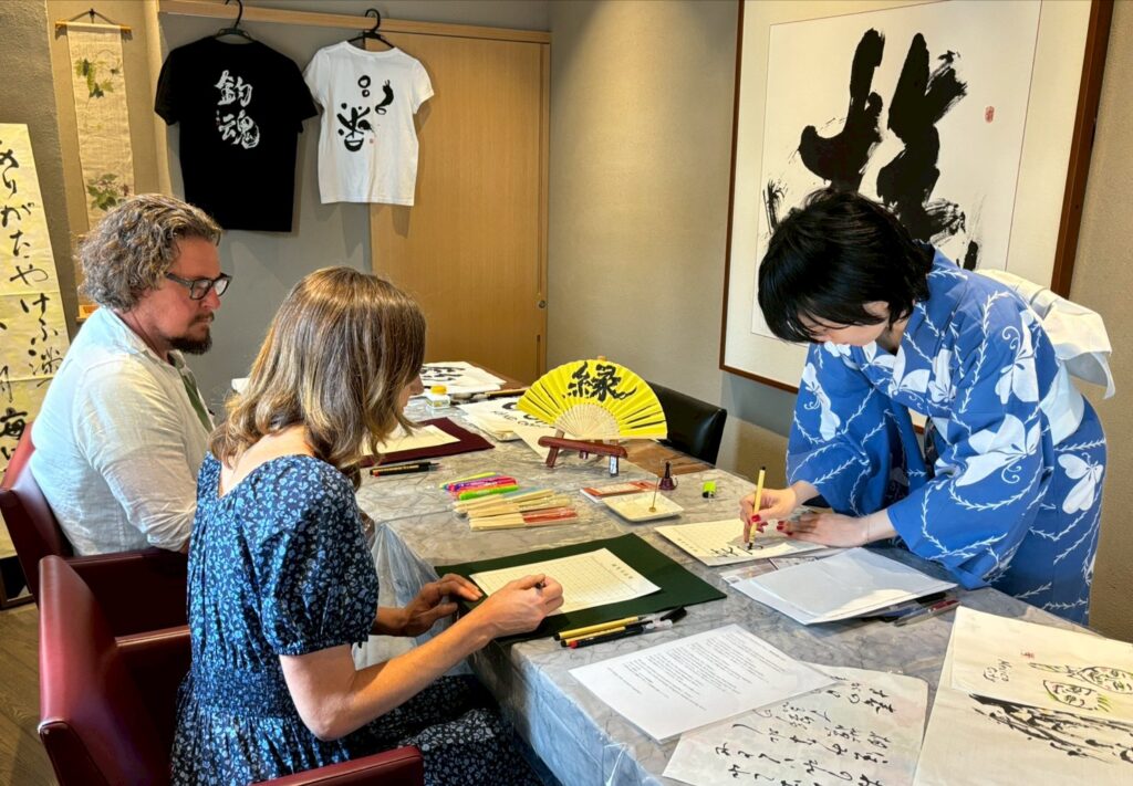 企業ロゴやアパレルデザインの提供、筆耕業務、インバウンド向けの書道クラスなど、その表現の場は多岐にわたる。