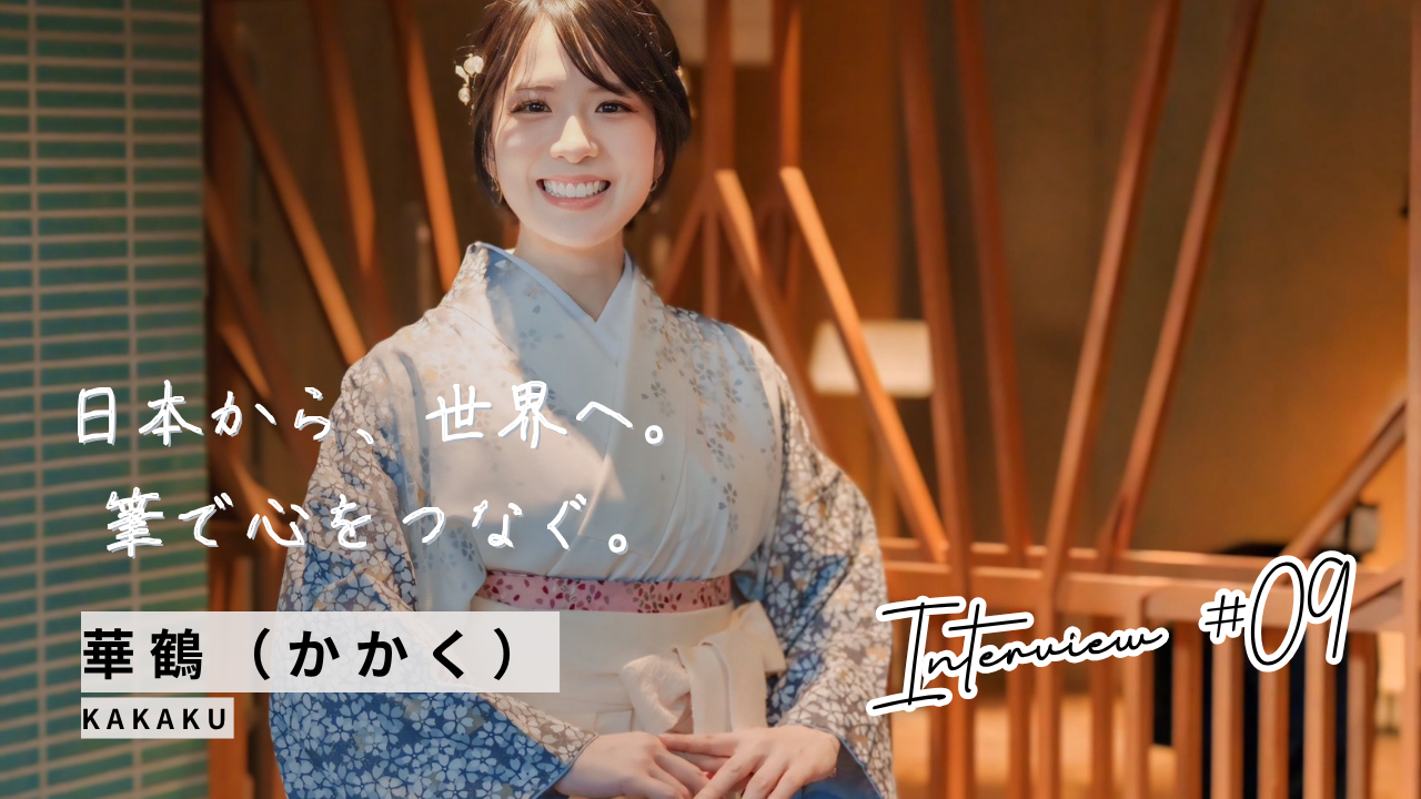 温かな笑顔と燃えるような情熱を併せ持つ、世界を旅する書家アーティスト・華鶴。